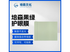 板面不反光,颜色为护眼果绿色,可书写、可投影: 膜背面自带背胶,可粘贴于表面光滑的板面、玻璃及带乳胶的墙面上。护眼膜采用环保材料复合而成,不含有害物质,膜面具有耐磨性: